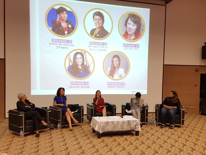Four panelists shared their views on gender equality in the workplace and how to achieve an egalitarian society–Datuk Dr. Mazlan Othman from Universiti Kebangsaan Malaysia, Dr. Waitchalla RRV Suppiah from the Ministry of Women, Family and Community Development, Loo Lee Lian from Invest Penang, and Nazlina Quadir from Women Techmakers KL. The forum was moderated by Ashley Suelyn from Lean In Malaysia.